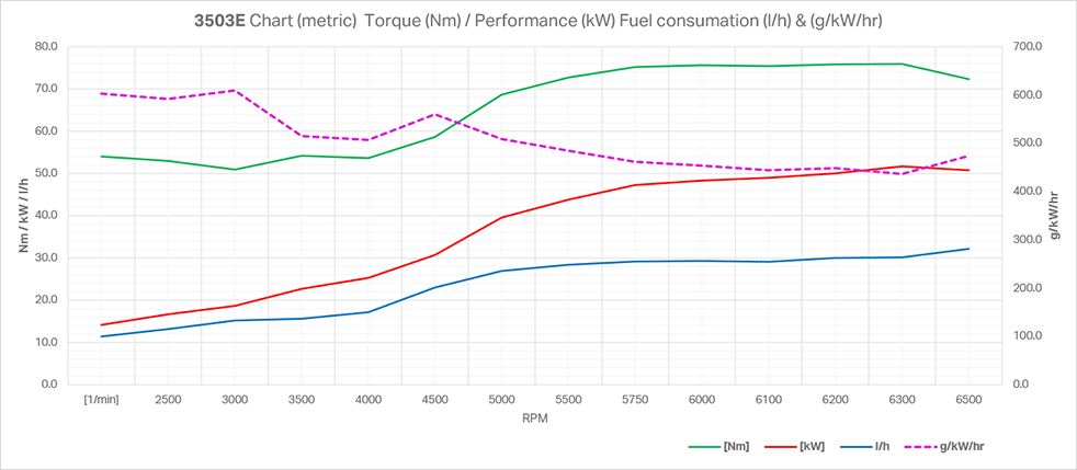 | Specific fuel consumption @6500rpm | (g/kWh) | 436,43 | |
